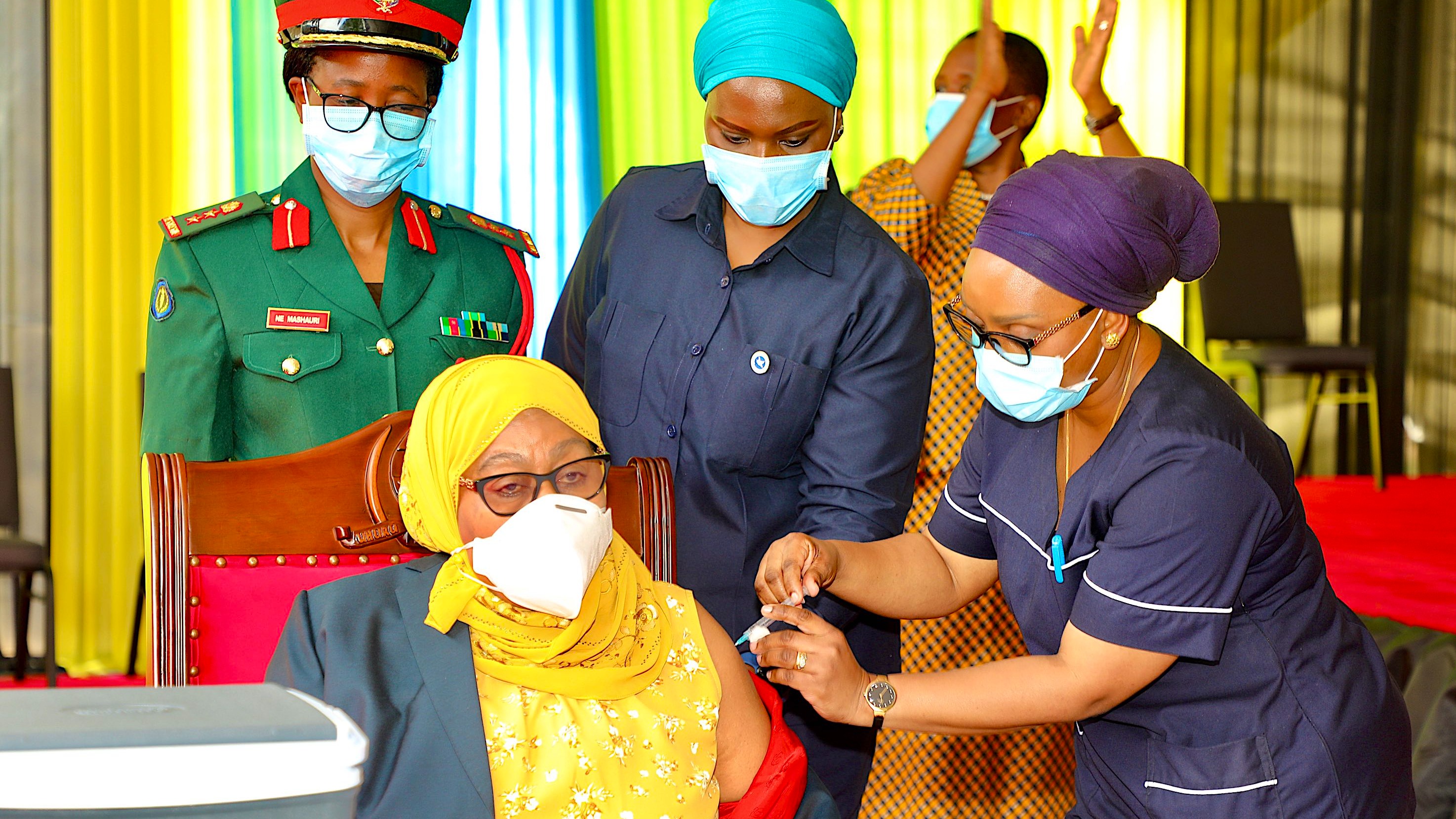 Rais wa Jamhuri ya Muungano wa Tanzania, Mhe. Samia Suluhu Hassan amezindua utolewaji wa chanjo ya UVIKO 19 na kuongoza Watanzania kupata chanjo hiyo katika viwanja vya Ikulu Jijini Dar es Salaam tarehe 30 Julai, 2021.